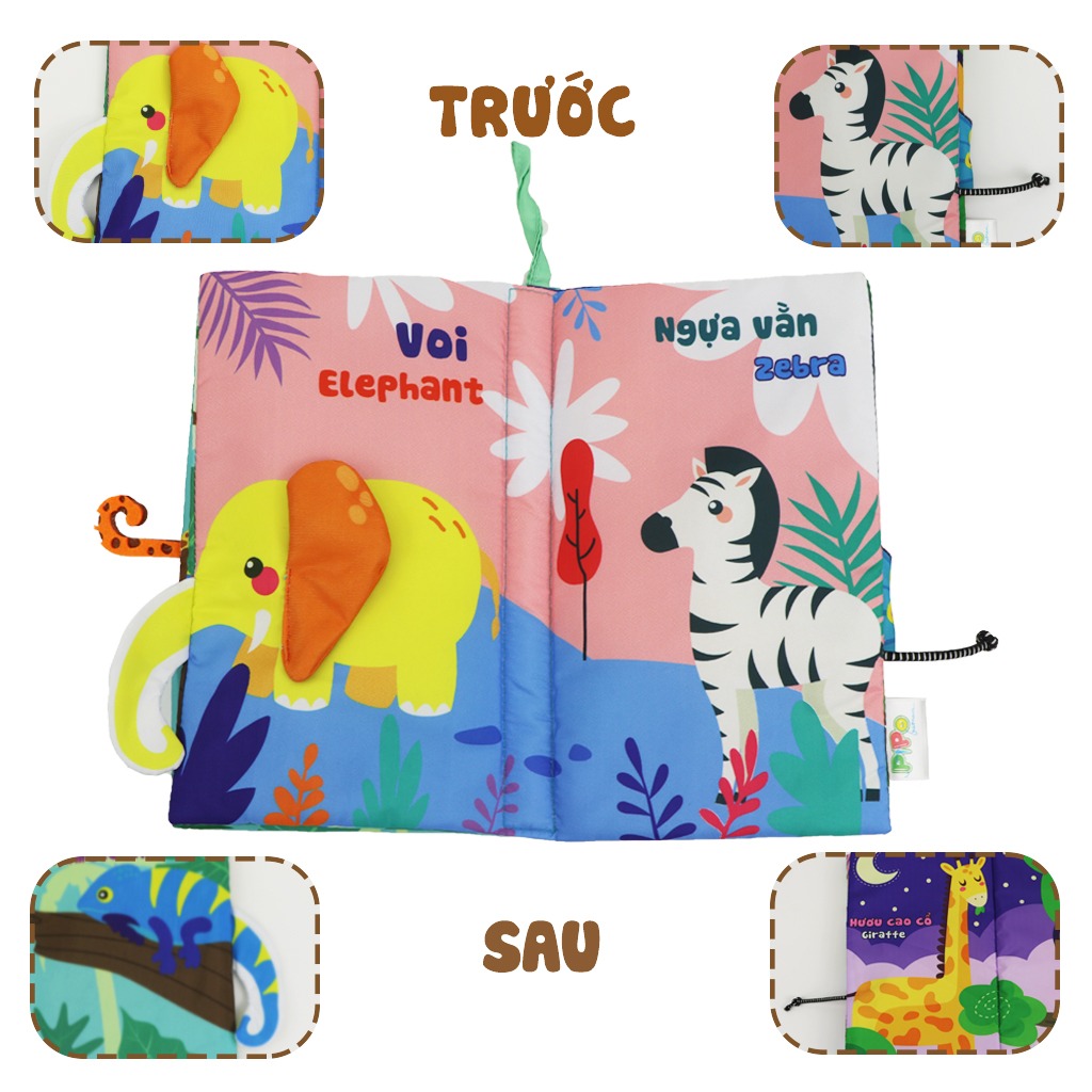 ✨Sách Vải Tương Tác Cho Bé Đoán Đuôi Con Vật - Dạo Chơi Rừng Xanh