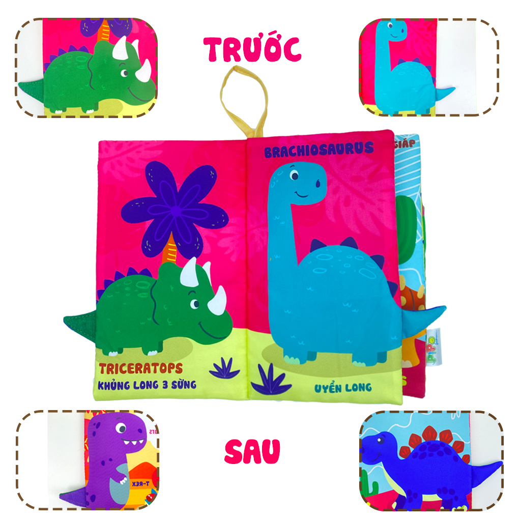 Sách vải tương tác đoán đuôi PiPo Việt nam an toàn cho bé chủ đề "Thế giới khủng long"