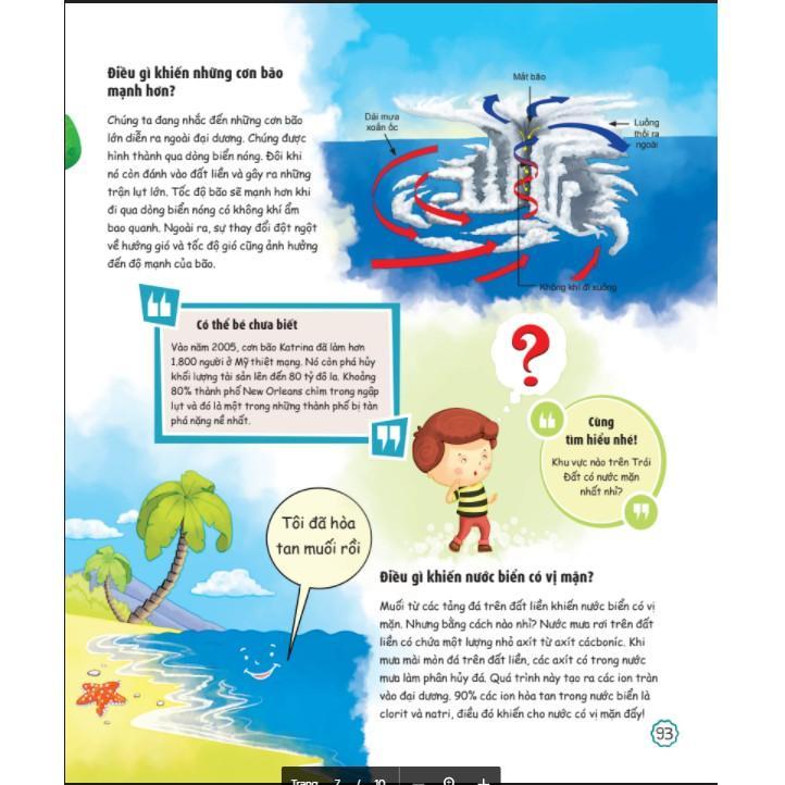 - 6 chương của cuốn sách sẽ mở ra những điều thú vị và trả lười những thắc mắc của con về: Cơ thể người, hệ mặt trời, công nghệ, khoa học, động vật, tự nhiên.