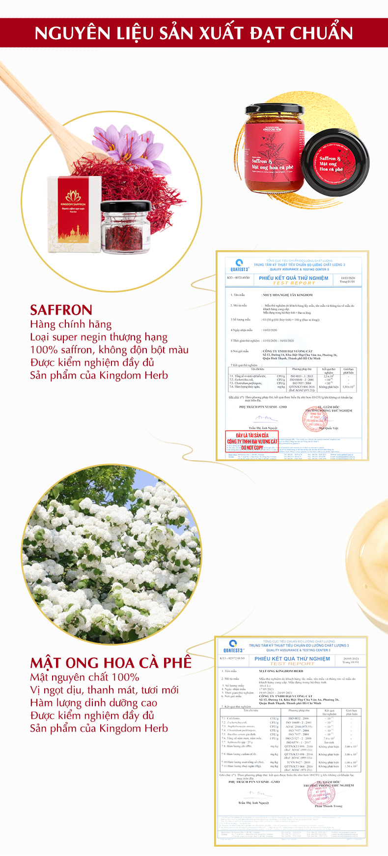 - Saffron ngâm mật ong hoa cà phê đạt tiêu chuẩn đo lường chất lượng Quatest 3