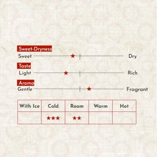 NGƯỜI DƯỚI 18 TUỔI KHÔNG ĐƯỢC UỐNG RƯỢU, BIA Xuất xứ: Nhật Bản Thành phần: Gạo, nước, men rượu Hàm lượng Ethanol: 14.7% Hướng dẫn sử dụng: Uống trực tiếp, uống nóng hoặc lạnh Hướng dẫn bảo quản: Bảo quản