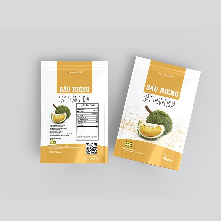 Đặc tính: Thành phần 100 % là sầu riêng. Từ nguồn sầu riêng tươi sạch của Trang Trại Ba Đảo (chuẩn VietGAP) với công nghệ sấy thăng hoa hiện đại, cho sản phẩm thơm ngon đặc biệt, cam kết chỉ sử dụng sầu riêng chín rụng loại 1, đảm bảo bạn sẽ thay đổi cách nhìn về sản phẩm sầu riêng sấy.