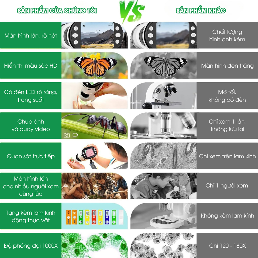 Mua tại TiktokKính hiển vi kỹ thuật số mini, tích hợp màn hình LED hiển thị hình ảnh rõ nét với độ phóng đại từ 200X đến 1000X. Thiết kế nhỏ gọn, dễ dàng cầm tay hoặc lắp chân đế. Kết nối qua cổng sạc USB. Giúp trẻ quan sát tế bào, thực vật, côn trùng... kích thích tư duy khoa học và sự tò mò khám phá. Nhỏ gọn hơn bộ phía trên