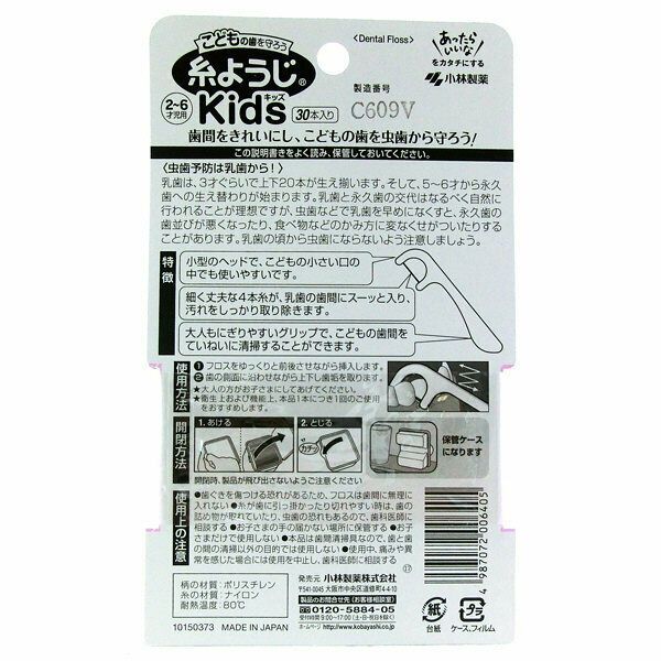 Set 30 tăm chỉ nha khoa dành cho trẻ em Kobayashi, loại chỉ tơ nha khoa mảnh, nhỏ và dai nên không gây tổn thương đến nướu/ lợi - nội địa Nhật Bản