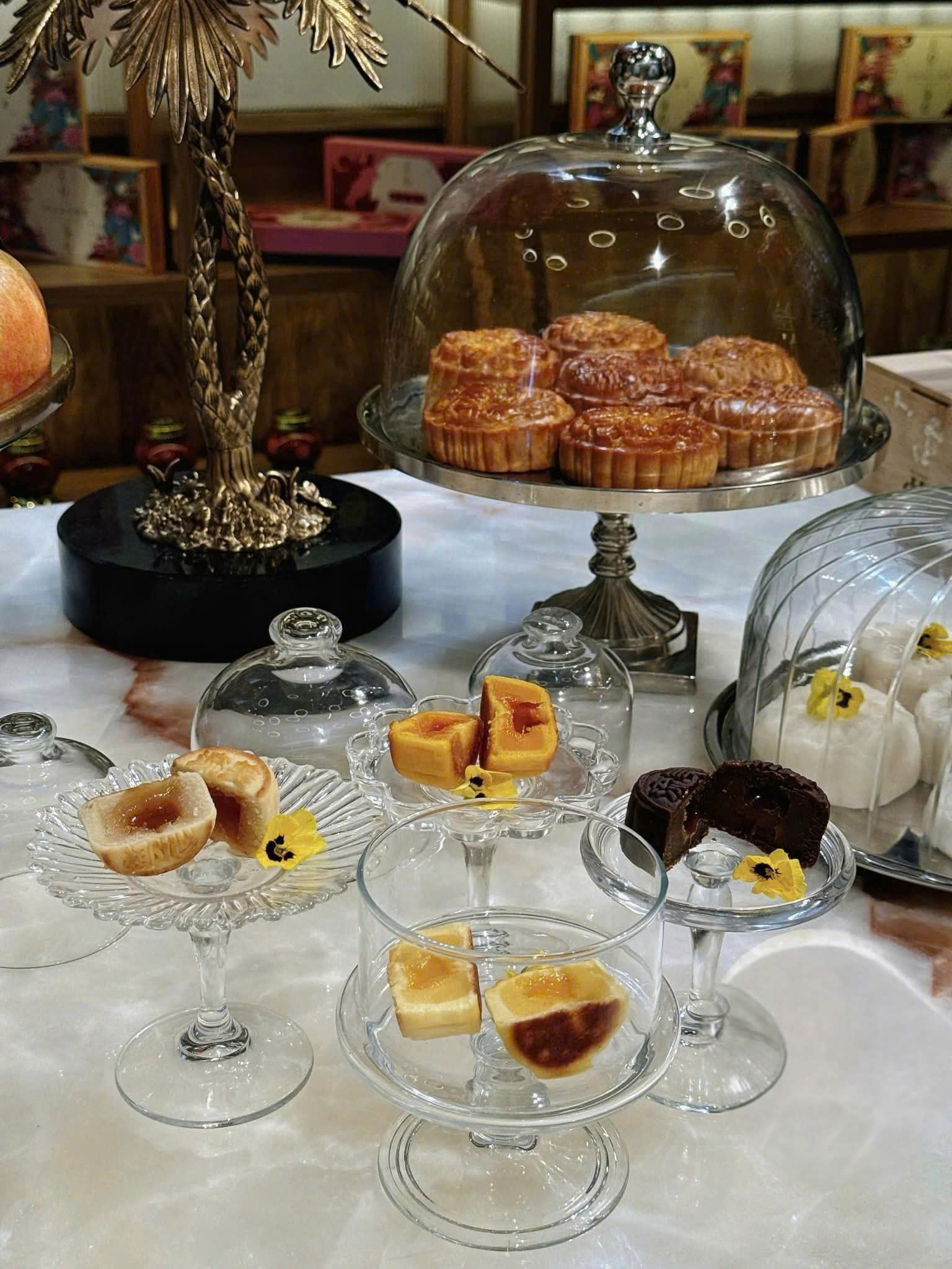 1 chân bồng có nắp 11,8cm 1 chân bồng 12,6cm 1 chân bồng có nắp 9,1cm 1 chân bồng có nắp 11cm Tủ bánh ngọt mini thanh lịch có nắp đậy, giá đựng bánh ngọt