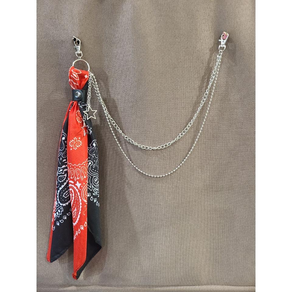 ✨Sét 4 món{Khăn+Đai+Móc treo+Xích} Chain quần jean - Khăn bandana streetwear - Đai da kẹp khăn - Móc tròn treo khăn