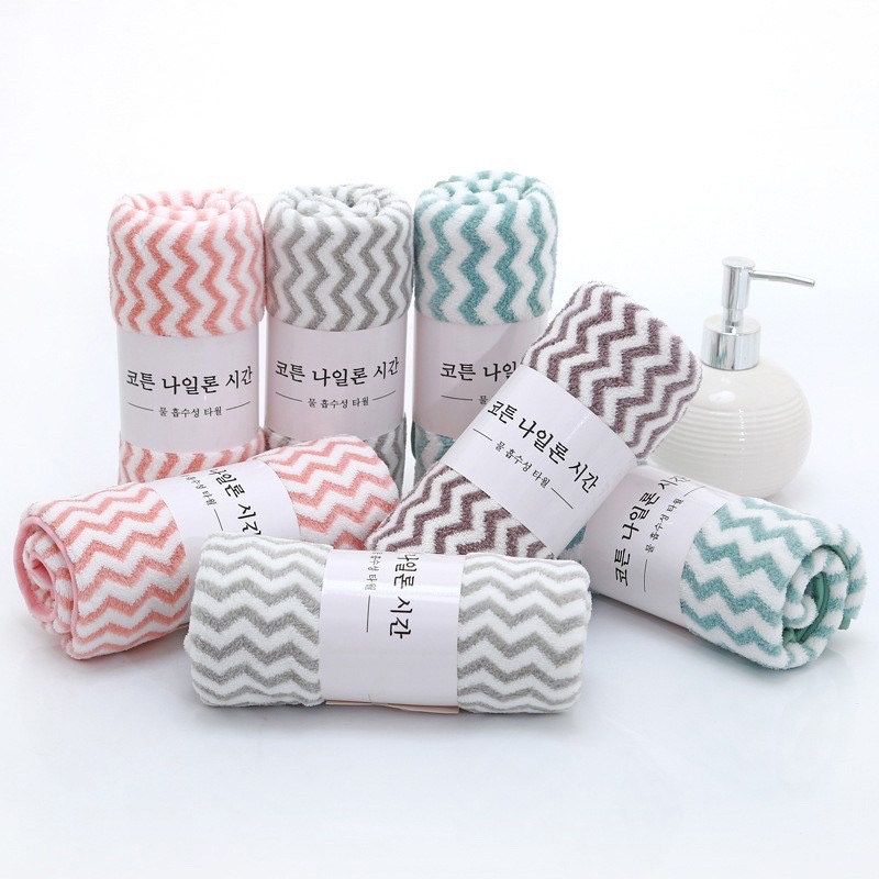 ✨Sét 5 cái khăn lau mặt lông cừu Hàn Quốc .50 x 30cm ,kẻ sọc nhiều màu ,sợi bông mềm mại cao cấp và tiện lợi