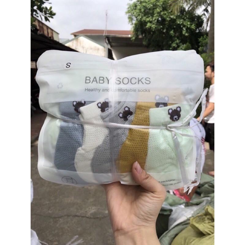 Set 5 đôi Vớ Tất Lưới Hình Gấu cổ ngắn cho bé sơ sinh (0-2 tuổi)