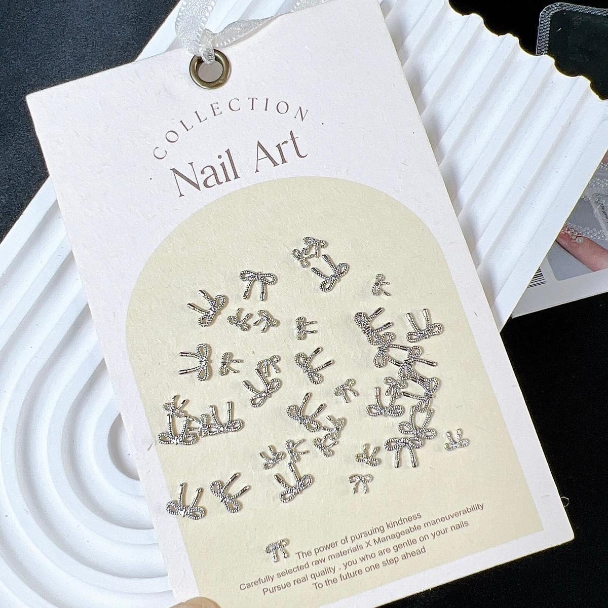 ✨Set 50 Charm Nơ Bạc Nơ Gân Thừng Bằng Hợp Kim Sáng Bóng Làm Nail Cao Cấp Trang Trí Gắn Móng Điệu Đà