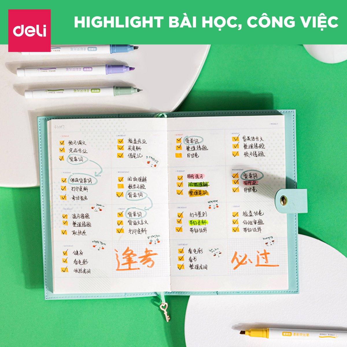 Bút highlight đánh dấu dạ quang Deli màu pastel neon