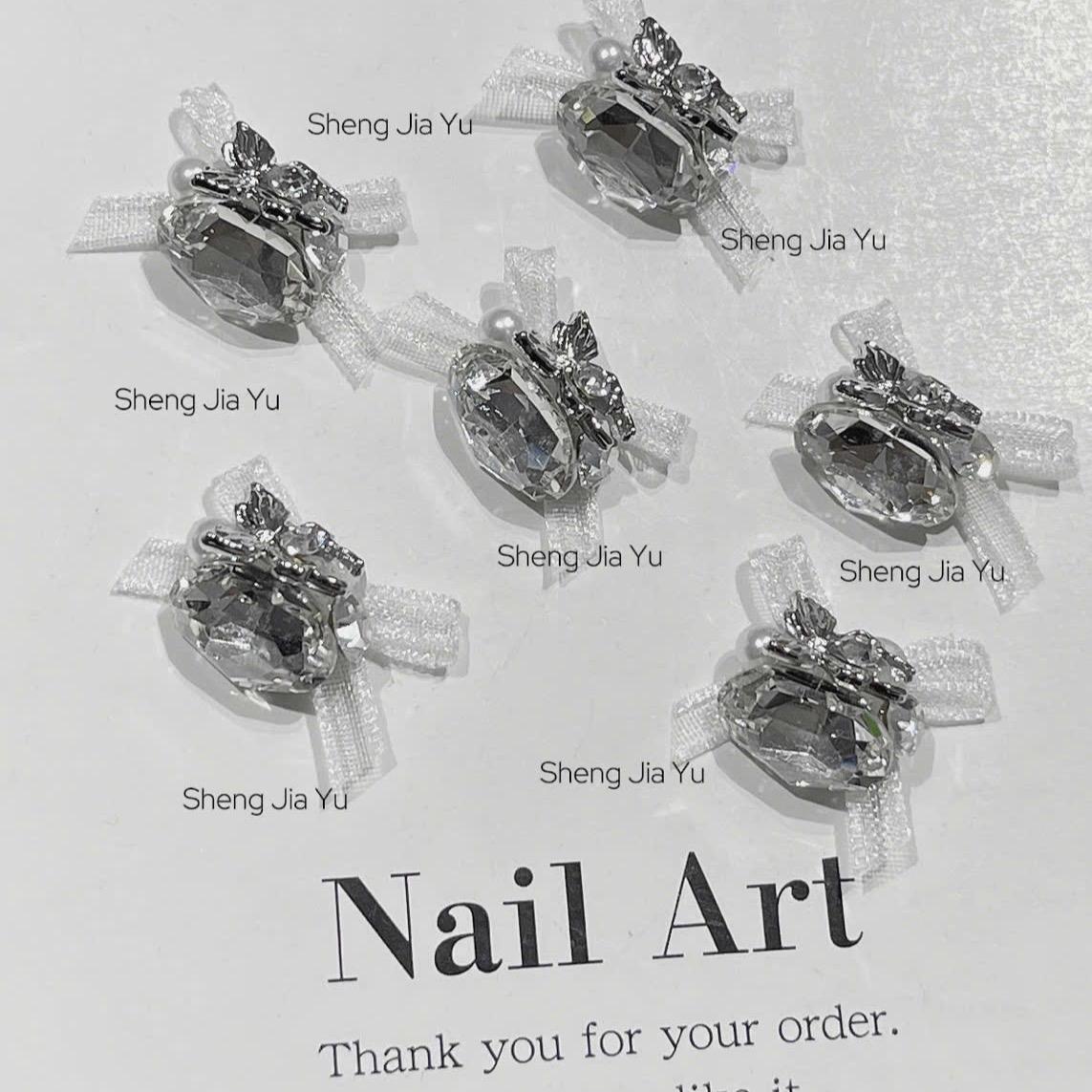 Set 6 Viên Charm Đá Khối Siêu Sáng Mix Nơ Voan Làm Nail Sang Chảnh Sheng Jia Yu, Charm Đá Viên Hình Trứng Có Nơ Đính Móng Màu Hồng Trắng Xanh Women Nữ