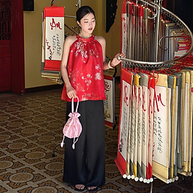 ✨Set áo yếm kèm quần chất vải gấm họa tiết hoa dập nổi Tuệ Nhi Miều Est.2013
