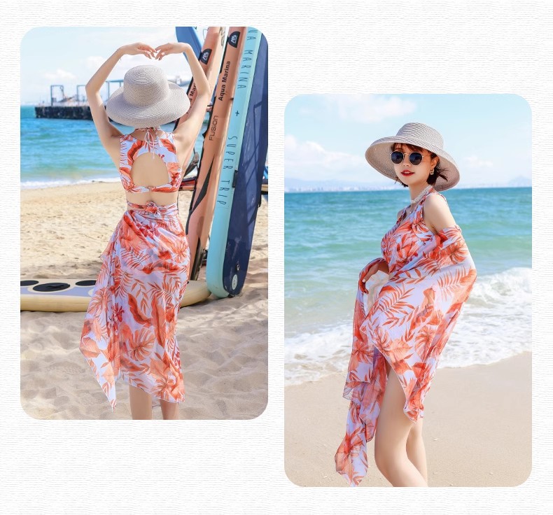 Set bikini 3 món họa tiết hoa kèm khăn voan, đồ bơi, đồ đi biển dành cho phái nữ - EVA SHOP