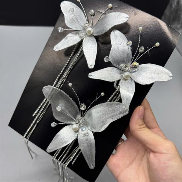 ✨Set cài tóc bướm ánh trắng bạc dây đá tua rua mẫu mới