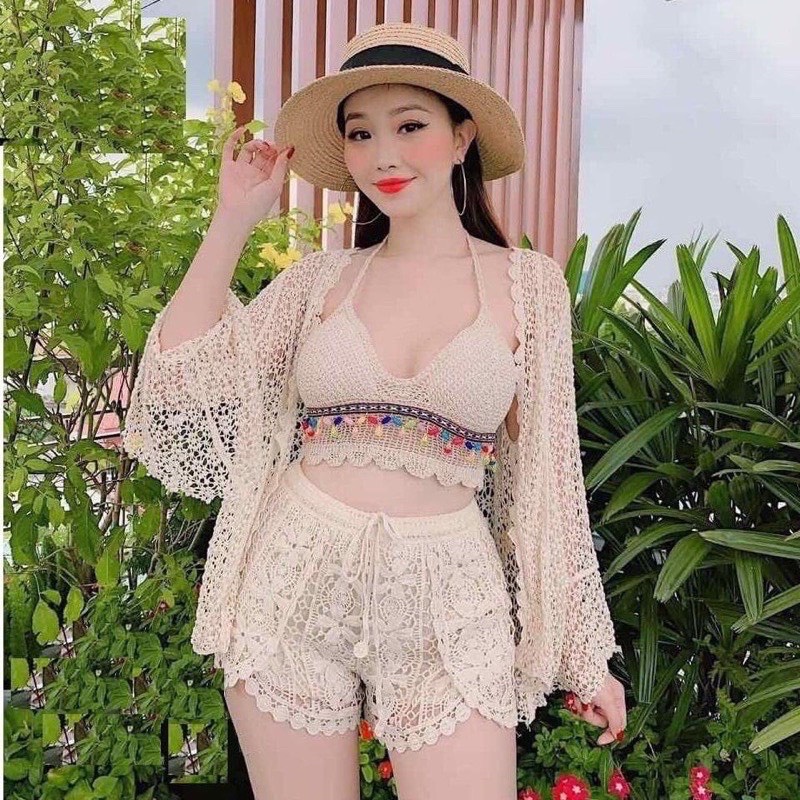 Áo khoác ren móc đồng bộ có thể mặc khoát thời trang với nhiều loại áo Croptop, dùng cho tất cả các loại đồ bơi đều đẹp