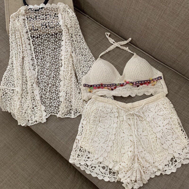 Set đồ bơi len móc Sexy gồm Bikini đùi kèm áo choàng móc thủ công bằng tay sắc nét,sợi đanh lì,chắc chắn,xịn mịn từng chi tiếtquần 2 lớp,lớp lót trong chất thun cotton mỏng thoáng khí chống lộ