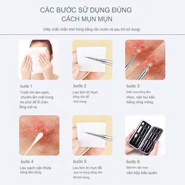 Công dụng tuyệt vời: Bộ dụng cụ giúp loại bỏ mụn đầu đen, mụn trứng cá cùng nhiều khuyết điểm khác, giữ cho làn da sạch sẽ – mịn màng mà không để lại vết đỏ hay sẹo.
