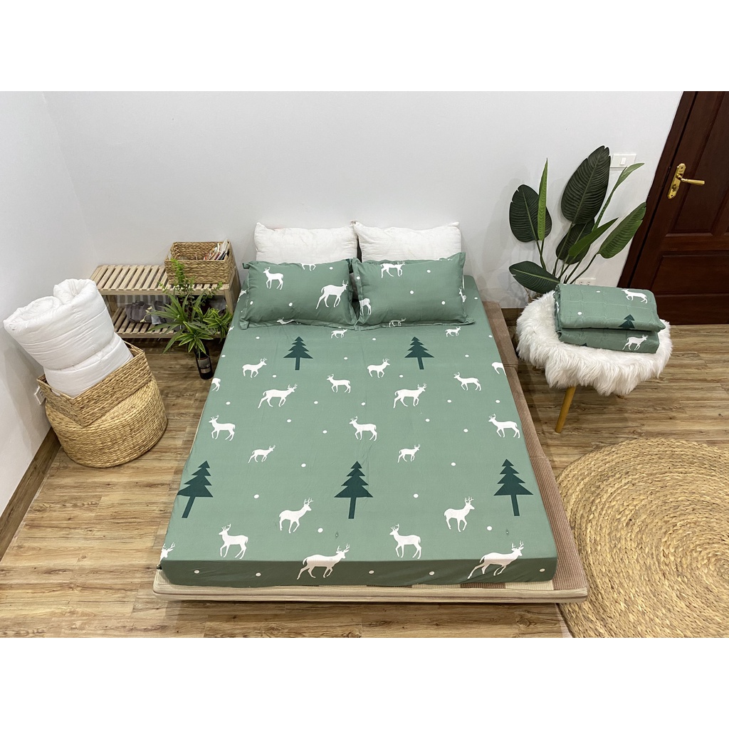 Bộ Drap Giường 1m2 HỆ THỐNG NỆM Bộ Chăn Ga Gối 5 Món Xuân Hè Cao Cấp Mịn Mượt Êm Ái