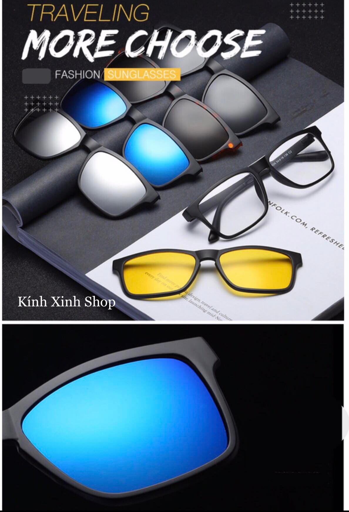 - Bộ gọng kính râm cận 2in1 2 tròng với thiết kế độc đáo, mới lạ và tiện lợi. - Phù hợp với người bị cận nhưng lại muốn đeo kính râm. - Tháo lắp
