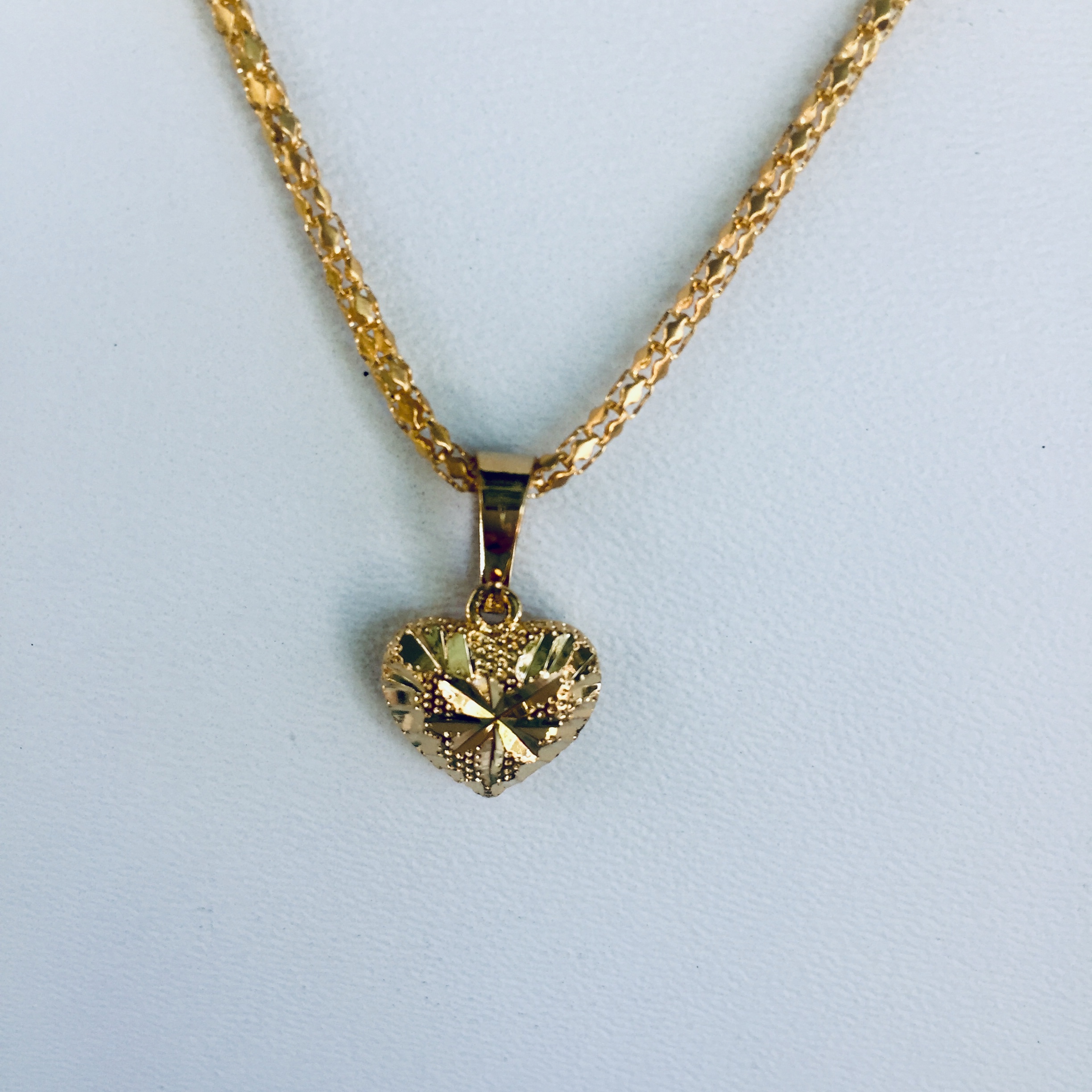 ✨Set Mặt Dây Chuyền Mạ Vàng 18K Đúc Hình Trái Tim Kim Cương, Kèm dây chuyền Mạ vàng 18K và hộp đựng trang sức.