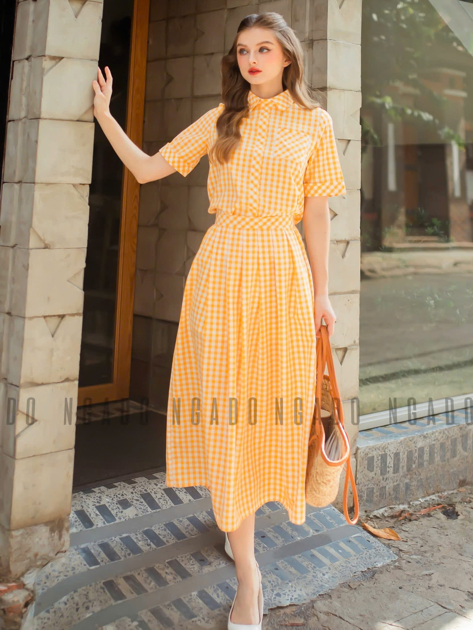 ✨Set sơ mi caro vàng NGADO