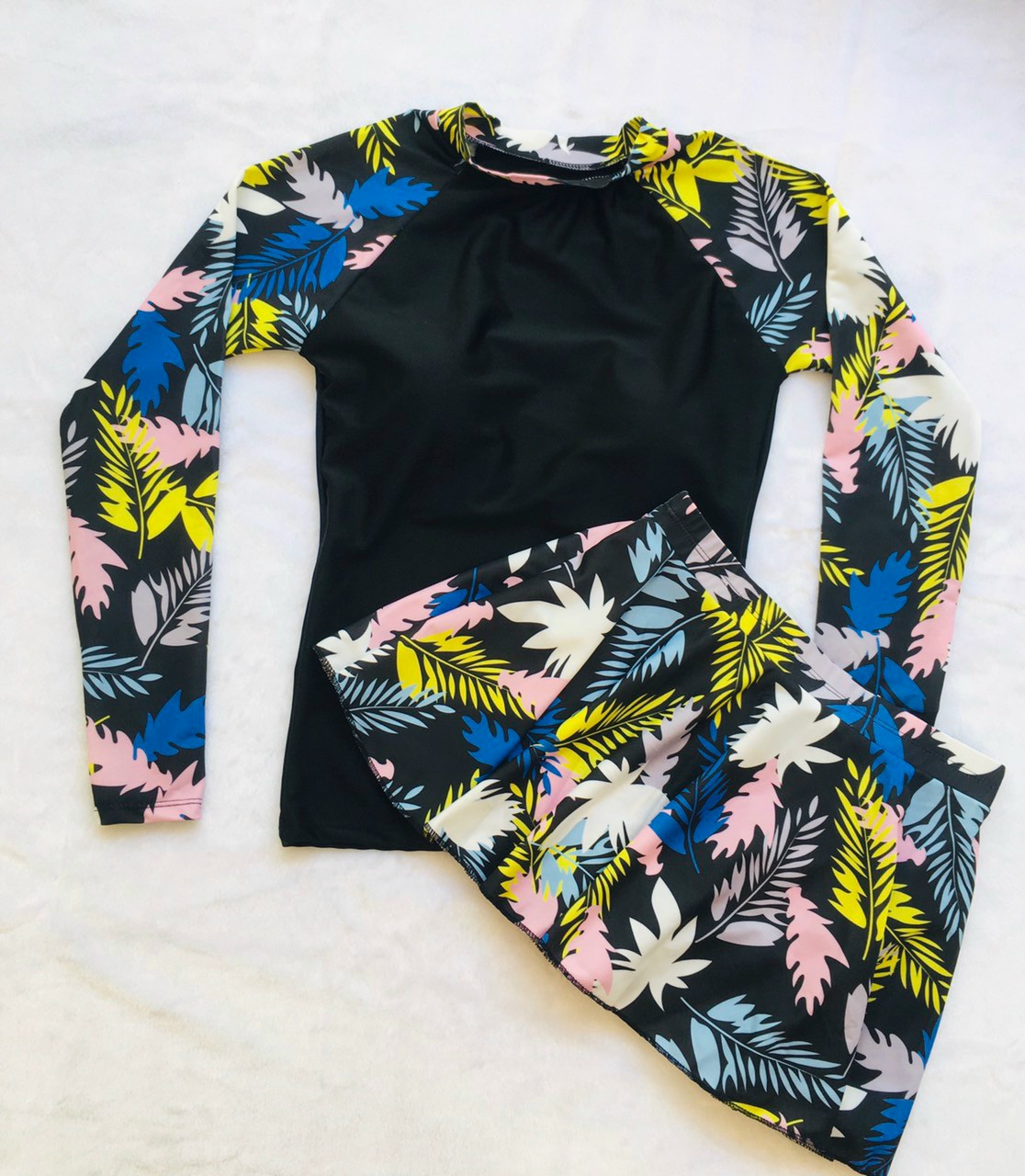 - Mẫu đồ bơi đôi cực xinh cho các couple đi biển cùng nhau ạ, dáng dài tay chống nắng thể thao tiện dụng. - Set 3 chi tiết bao gồm: Áo bơi dài tay
