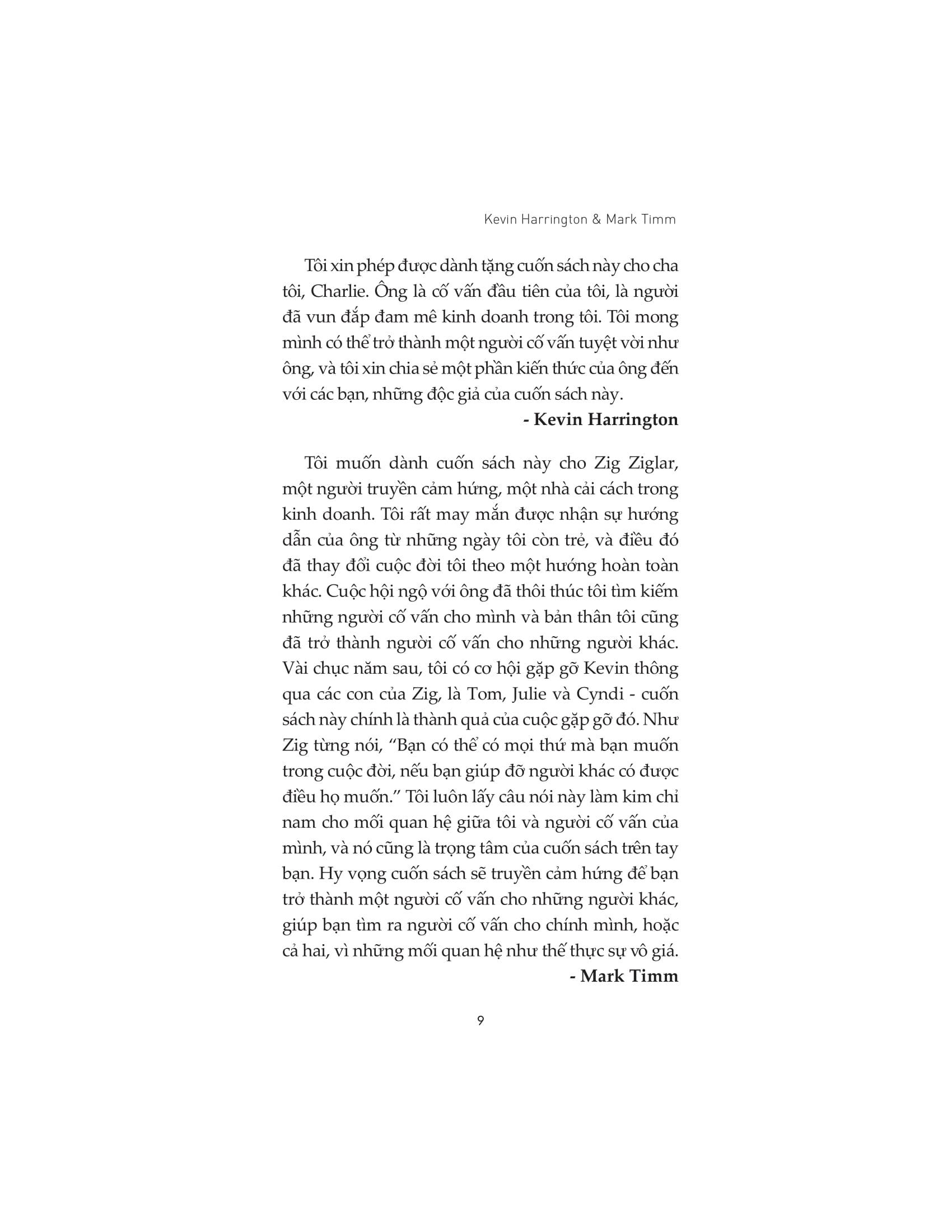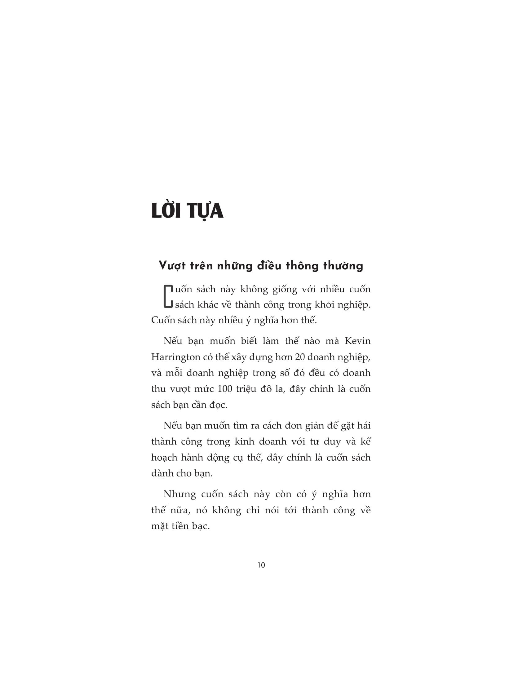 Ngoài ra, Kevin và Mark Timm cũng không ngần ngại chia sẻ những sai lầm mà họ đã mắc phải trong sự nghiệp. Thông qua đó, giúp các nhà khởi nghiệp tránh đi vào “vết xe đổ”, hình thành tư duy đúng đắn và tập trung vào hành động để đạt được những thành công trọn vẹn - tại nơi làm việc, tại gia đình và trong mọi lĩnh vực của cuộc sống.
