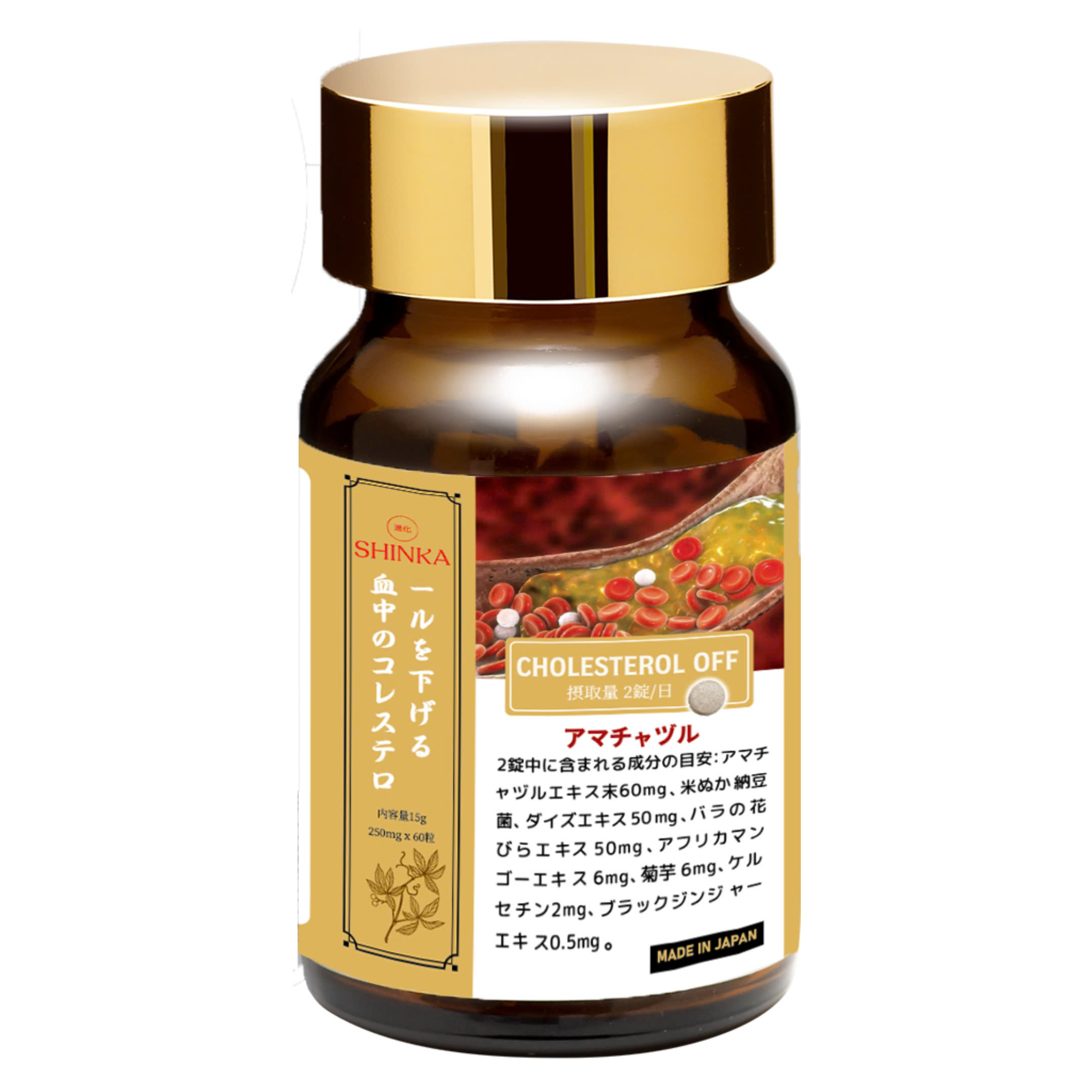 Mua tại TiktokSản phẩm Shinka – CHOLESTEROL OFF lọ 60 viên của công ty Growbis được tổng hợp từ những nguyên liệu thiên nhiên của Nhật Bản như Giảo Cổ Lam, đậu nành lên men với Natto, cánh hoa hồng, gạo đỏ... thông qua công nghệ bào chế và sản xuất của nhà máy Powerful Health Foods Company Limited 215-1 Hiraoka, Kamiminochigun Shinanomachi, Nagano 389-1315, Japan Shinka – CHOLESTEROL OFF đem đến giải pháp hỗ trợ tốt nhất để giải quyết các vấn đề gồm: o Lượng cholesterol xấu cao trong máu o Các nguy cơ đột quỵ do xơ vữa mạch máu o Gan bị nhiễm mỡ Công dụng: Sản phẩm giúp giảm cholesterol xấu hiệu quả, ngăn ngừa xơ vữa động mạch, hỗ trợ giảm nguy cơ đột quỵ và cải thiện tình trạng gan nhiễm mỡ. Đối tượng sử dụng: Người trưởng thành, người có nhu cầu ngăn ngừa mỡ máu, cholesterol cao, gan nhiễm mỡ. Đặc biệt phù hợp với những người có chế độ ăn uống không lành mạnh, ít vận động hoặc có tiền sử gia đình mắc bệnh tim mạch. Thành phần Shinka Cholesterol OFF (trong mỗi 2 viên nén) 1.Chiết xuất cánh hoa hồng: 50mg 2.Giảo cổ lam: 60mg 3.Cám gạo, đậu nành lên men với natto: 50mg 4.Chiết xuất xoài Châu Phi: 6mg 5.Bột cúc vu: 6mg 6.Chiết xuất gừng đen: 0.5mg 7.Quercetin: 2mg Liều dùng: Uống 2 viên mỗi ngày. Mỗi lần 1 viên, dùng trước bữa ăn 30 phút với nước hoặc nước ấm. Quy cách đóng gói: Lọ thuỷ tinh. 60 viên / lọ