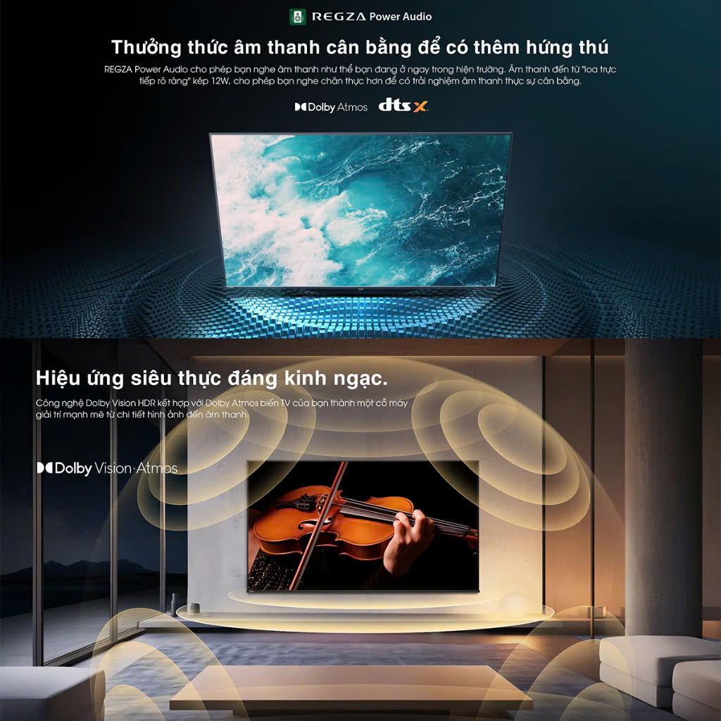 - Công nghệ xử lý hình ảnh: AI 4K Upscaling, HDR 10+ Decoding, Dolby Vision, AI Football Mode, Color Re-Master,