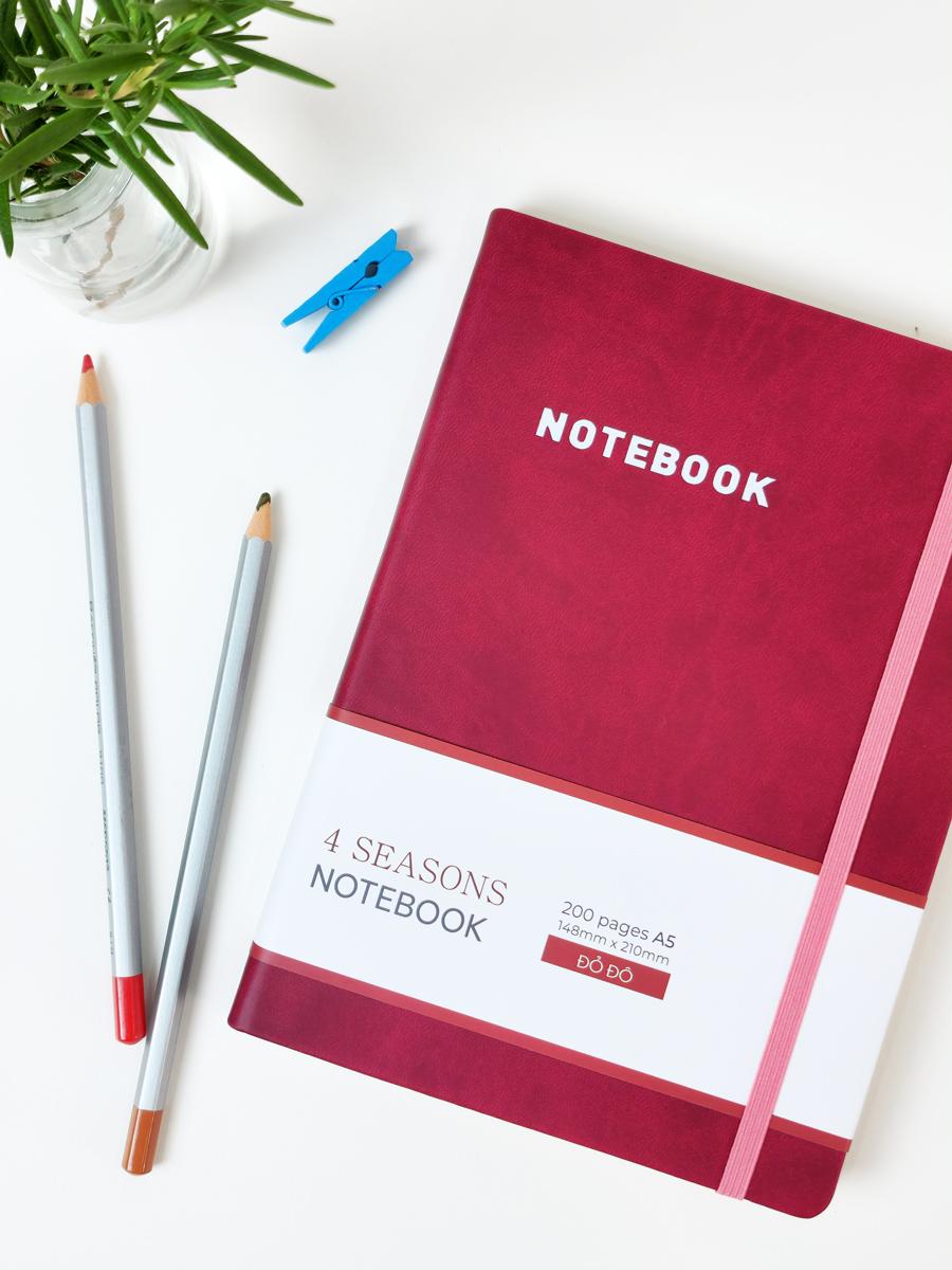 ✨Sổ Bìa Da A5 - Kẻ Ngang 200 Trang 80gsm - 4 Seasons - The Sun 01 - Màu Đỏ Đô
