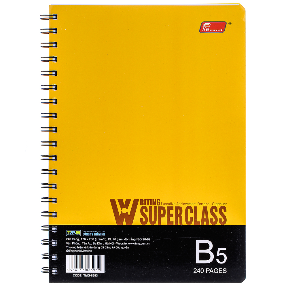 Sổ Lò Xo Grand B5 240 Trang Bìa Giấy thiết kế đơn giản, hiện đại và đẹp mắt. Form giấy cứng cáp, giữ sổ không bị gấp gãy, không nhăn nhàu. Bộ sưu tập sổ gồm 6 màu cho bạn lựa chọn. Đây là dạng sổ lò xo hiện rất được ưa chuộng trên thị trường. Bạn có thể luồn bút vào khoảng trống giữa những vòng lò xo. Sổ gồm 240 tờ giấy khổ B5 nhỏ gọn, thuộc loại sổ dày mang tính tiện dụng và tiết kiệm.
