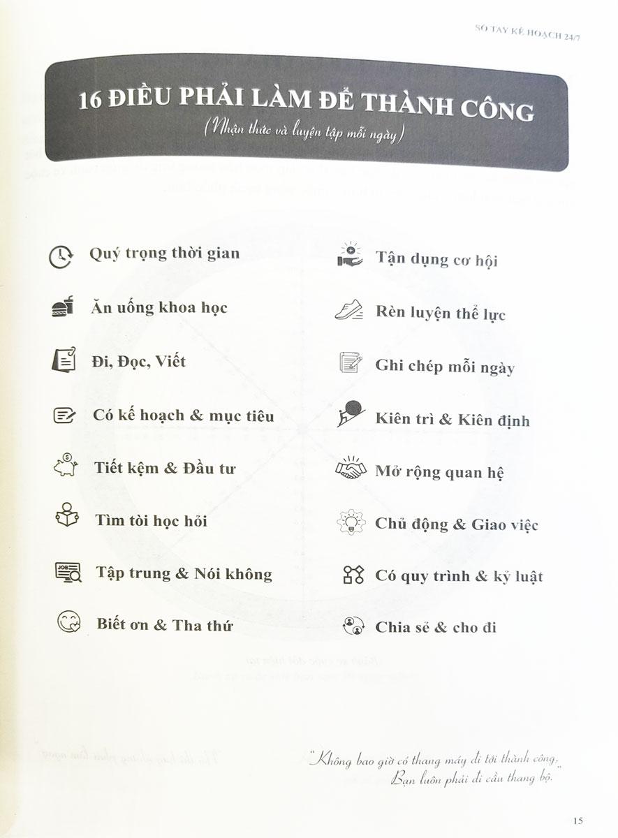 Sổ Tay Kế Hoạch 24/7 là cuốn sổ thực hành giúp bạn lên kế hoạch từng ngày, từng tuần, từng tháng dễ dàng.