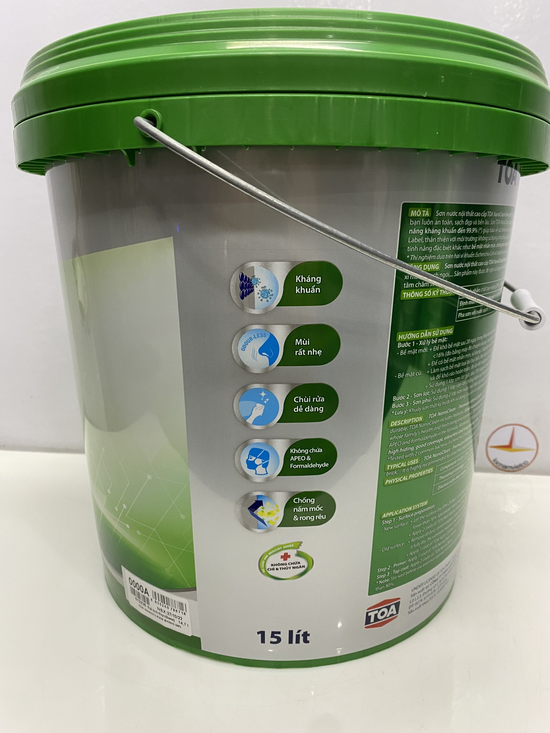 Sơn nước nội thất cao cấp Toa Nanoclean màu xanh lá 7658_ 5L - Được chế tạo từ nhựa acrylic nguyên chất với công nghệ tiên tiến nano giúp nhà bạn luôn an toàn, sạch sẽ