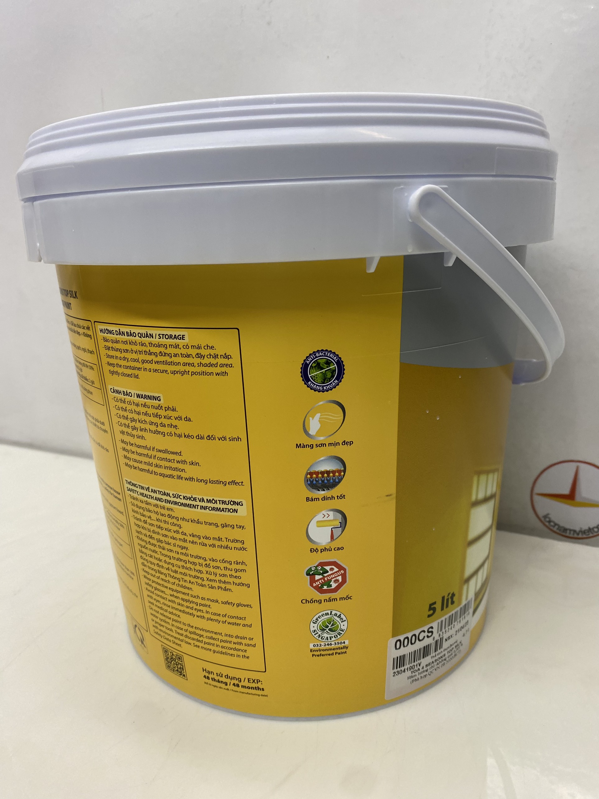 Mua tại TiktokSơn nước Toa 4 Season Top Silk dễ lau chùi nội thất màu vàng 7923 _5L Sơn Nước nội thất Toa 4 Season top silk dễ lau chùi được chế tạo từ nhựa nhũ tương, với công nghệ sơn nước cao cấp, chất lượng tốt, độ phủ cao, bề mặt nhẵn mịn, có khả năng chống nấm mốc cao, có màu sắc bền đẹp. Công thức không chứa Chì, Phoóc-môn, APEO... an toàn cho sức khoẻ và môi trường.