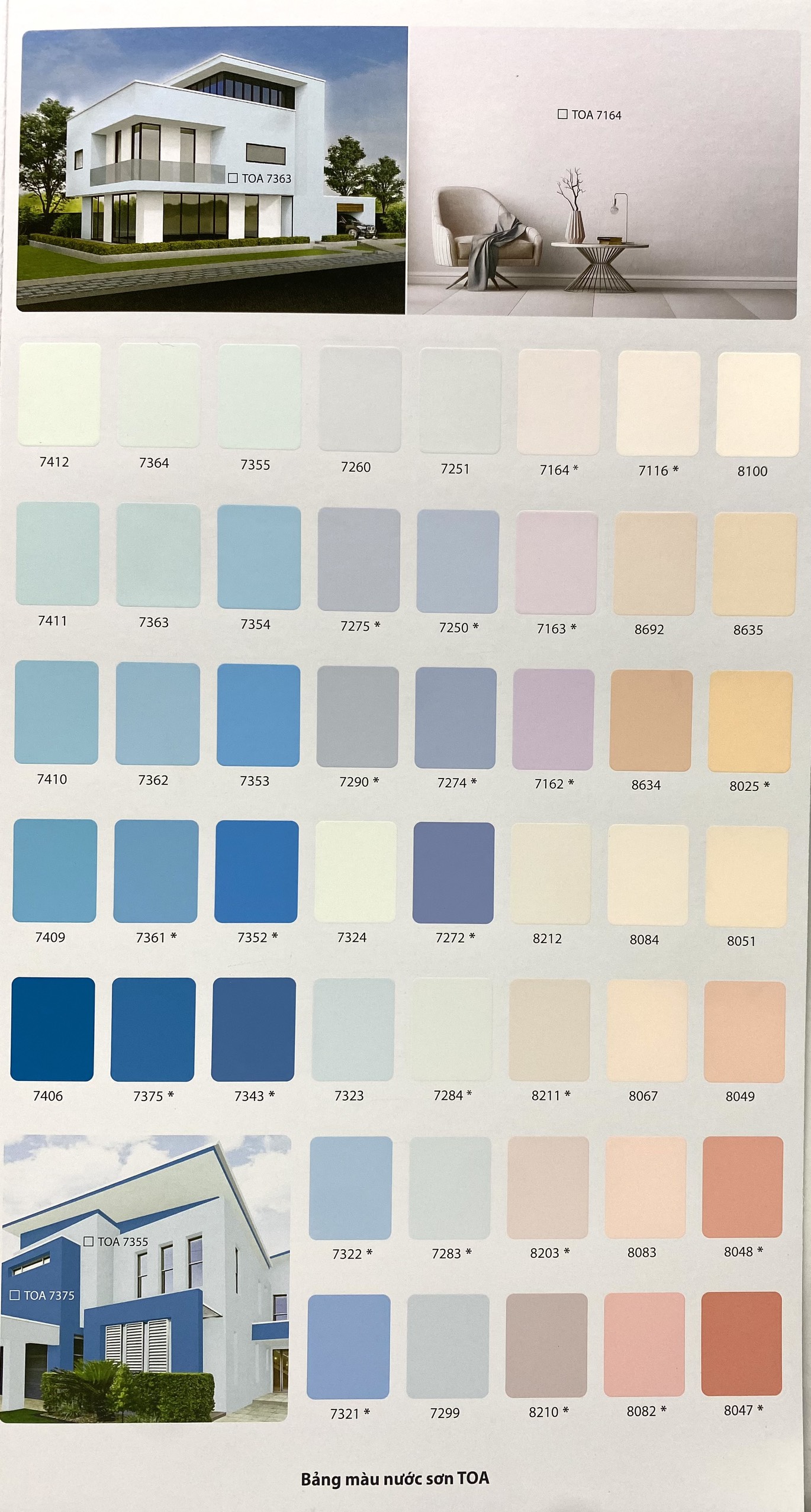 - Màu sắc: Nhiều màu Theo bảng màu và quạt màu TOA