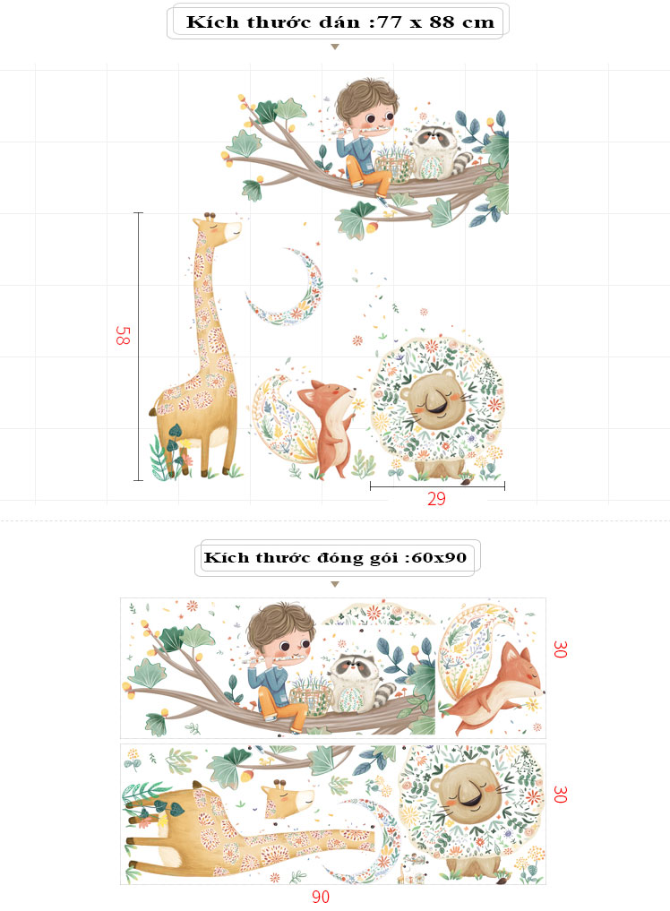 Decal dán tường Combo Vườn thú có màu sắc tươi sáng, vui nhộn. Decal với các hoạ tiết nhân vật hoạt hình, đem lại cảm giác như những người bạn thân thiết của bé ngay trong