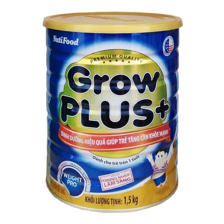 - Chất lượng GrowPLUS+ được đảm bảo bởi hệ thống Quản Lý Chất Lượng ABS – QE Hoa Kỳ, hoàn toàn không chứa bất kỳ chất kích thích tăng trưởng gây hại nào, giúp trẻ tăng cân khỏe mạnh, ba mẹ yên tâm và hài lòng về sức khỏe của bé ĐỐI TƯỢNG SỬ DỤNG: Dành cho trẻ trên 1 tuổi THÀNH PHẦN Sữa bột nguyên kem bổ sung vitamin A và D3, maltodextrin, bột sữa (sữa tách béo, chất béo thực vật), đường sucrose, medium chain triglycerides (MCT), chất xơ thực phẩm (FOS/ Inulin), L-lysin hydroclorid, vitamin và khoáng chất (calci carbonat, natri-L-ascorbat, magnesi oxyd, sắt pyrophosphat, DL-alpha tocopheryl acetat, niacinamid, kẽm oxyd, phylloquinon, retinyl acetat, acid folic, natri selenit, calci D-pantothenat, cholecalciferol, cyanocobalamin, kali iodid, pyridoxin hydroclorid, thiamin mononitrat, inositol, thiamin hydroclorid, D-biotin), 2-Fucosyllactose (2-FL), hương liệu tổng hợp dùng cho thực phẩm. HƯỚNG DẪN SỬ DỤNG: Dạng bột Pha 7 muỗng gạt GrowPLUS+ (tương đương 38 gram) với 180 ml nước chin ấm (khoảng 500C). Khuấy đều cho đến khi hòa tan. Dạng bột pha sẵn Lắc đều trước khi uống. Ngon hơn khi uống lạnh. Thận trọng: Đổ bỏ phần thừa sau mỗi lần uống. Sản phẩm pha xong tốt nhất nên dùng ngay, trường hợp chưa dùng ngay phải đậy kín, bảo quản trong tủ lạnh từ 4 - 60C và dùng trong vòng 24 giờ. HƯỚNG DẪN BẢO QUẢN: Dạng bột: