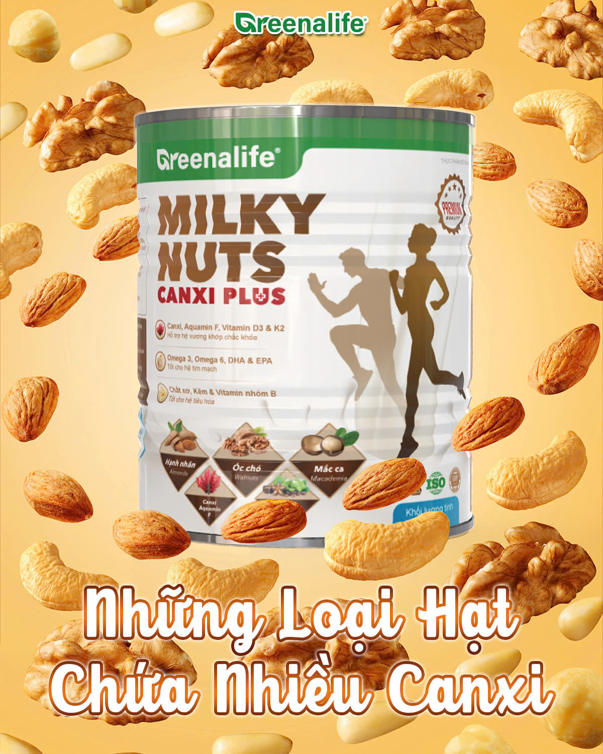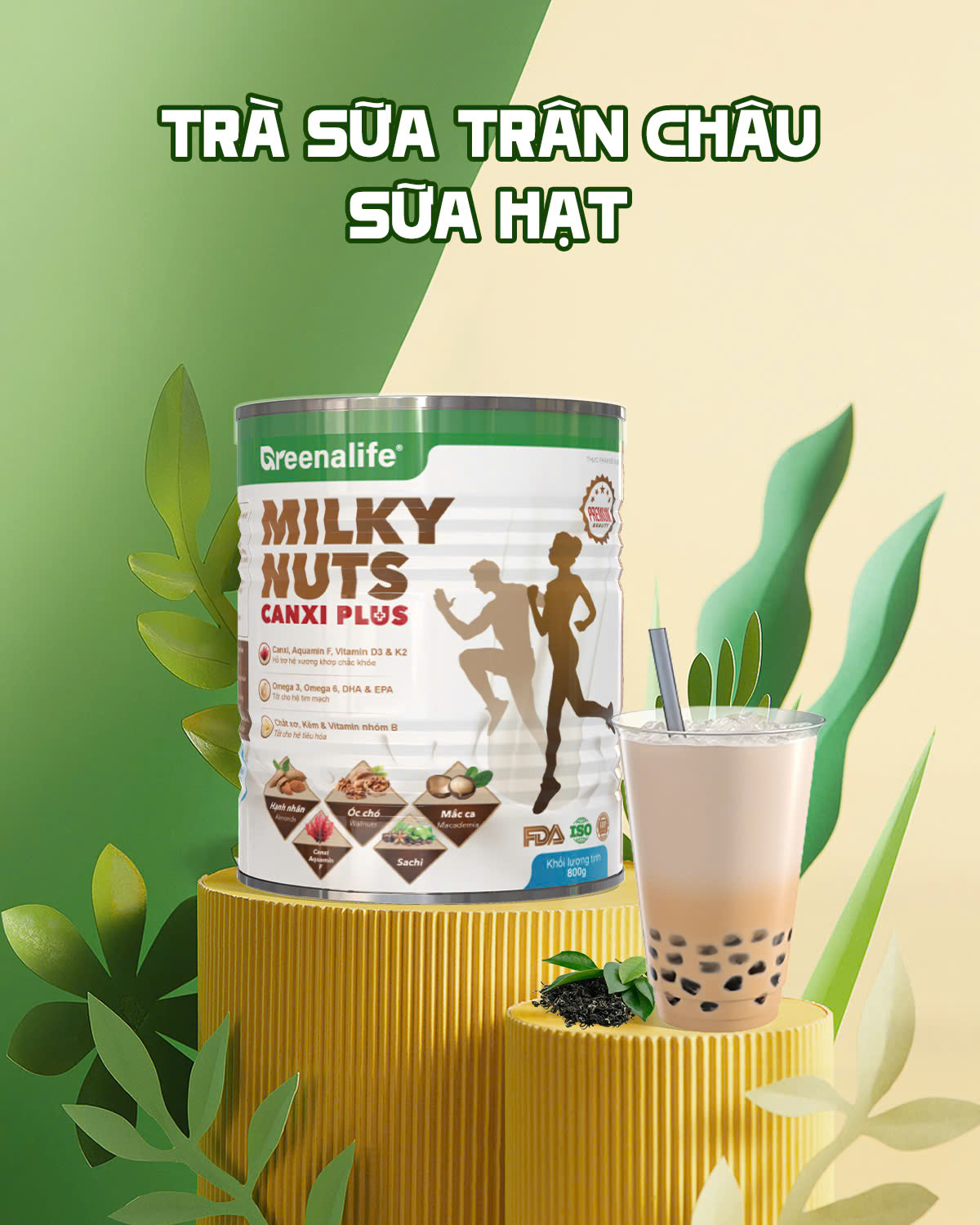 Milky Nuts - Canxi Plus - được kết hợp từ hạnh nhân, óc chó, mắc ca, đậu nành,... cùng Canxi Aquamin F, các khoáng chất như Magie, Kẽm và Vitamin D3,.... đã tạo nên một hỗn hợp dinh dưỡng đặc biệt hữu ích cho xương và khớp. Không chỉ hỗ trợ quá trình hình thành và tái tạo mô xương mà còn giúp duy trì cân nặng khoa học của cơ thể, giảm áp lực đối với xương khớp. Hơn nữa, chất xơ từ hạt còn hỗ trợ việc giảm viêm và cung cấp sự linh hoạt cho xương khớp. Bổ sung 2 ly Milky Nuts - Canxi Plus vào chế độ ăn uống hàng ngày để hỗ trợ sức khỏe xương khớp và đầy đủ dinh dưỡng cho toàn bộ cơ thể!