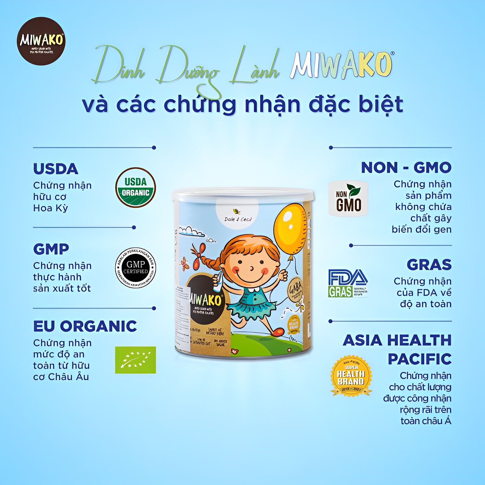 Combo 4 Hộp 400g Sữa Công Thức Hữu Cơ Miwako A+ Vị Vani, Sữa Hạt Cho Bé Phát Triển Trí Não Chiều Cao THÔNG TIN SẢN PHẨM SỮA HẠT MIWAKO A+, SỮA HỮU CƠ CHO