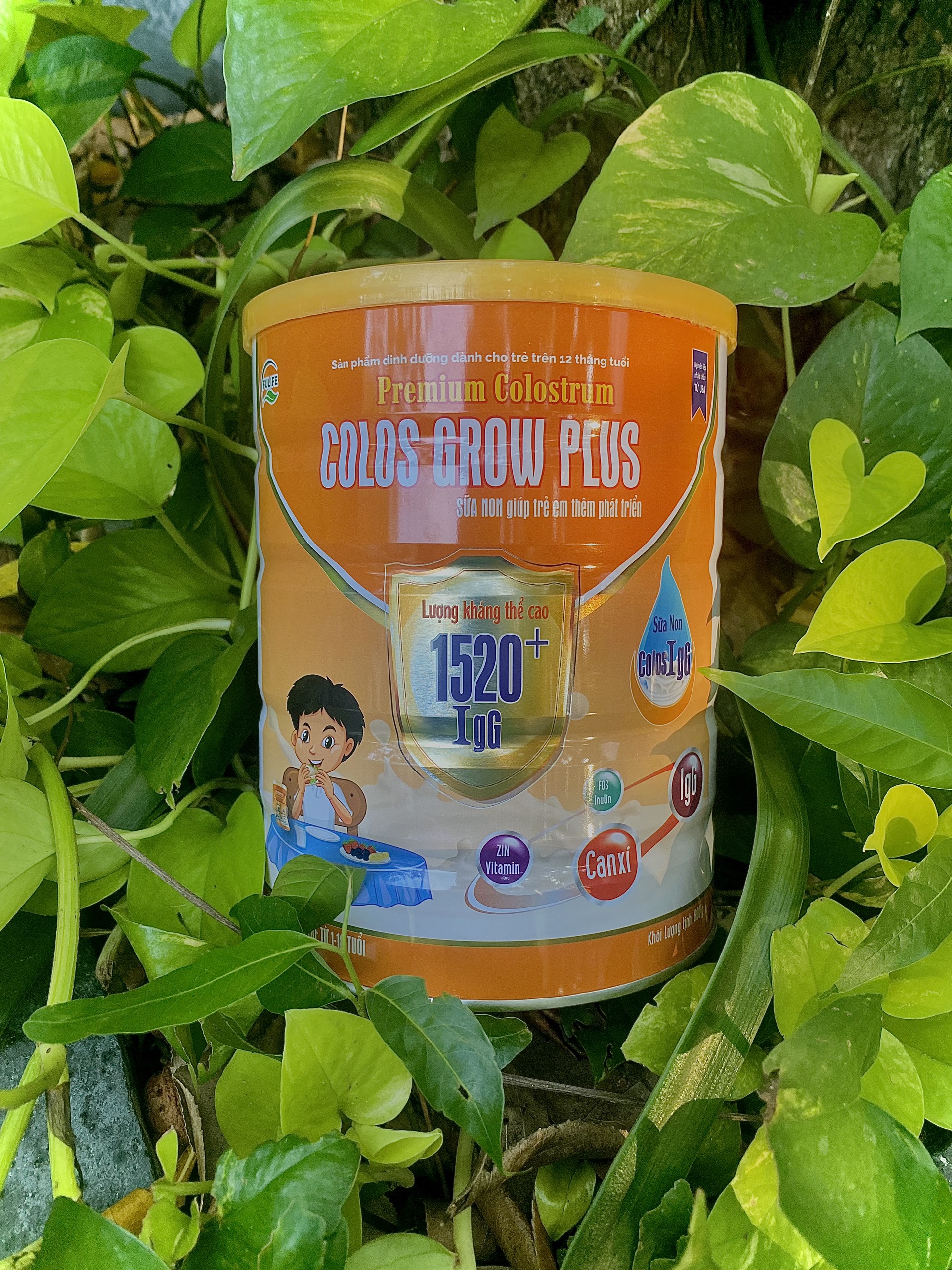 Sữa Non Fulife Colos Grow Plus Phát Triển Toàn Diện Cho Trẻ từ 1 đến 18 tuổi giúp bổ sung dưỡng chất tăng cường hệ miễn dịch, giúp cơ thể nâng cao đề kháng, tăng cân và phát triển chiều cao. Sữa có hàm lượng cao, được sản xuất tại Việt Nam với nguồn nguyên liệu từ Mỹ, đảm bảo hàm lượng sữa non cao và chất lượng.   Đặc điểm nổi bật của sữa non Colos Grow Plus Có hàm lượng kháng thể cao Tăng cường hệ miễn dịch và tăng sức đề kháng cho cơ thể Phát triển chiều cao Tiêu hóa tốt, ngăn ngừa táo bón Tăng cân khỏe mạnh   Thành phần của sữa non Colos Grow Plus Colos Grow Plus chứa Immunoglobulin, Chất xơ hòa tan, Vitamin D3 Canxi Growth factor, khoáng chất và nhiều Vitamin khác. Ngoài ra, còn chứa Immunoglobulin (IgA, IgM, IgG), Chất xơ hoà tan ( FOS/Inulin) Vitamin D3 Canxi Growth factor (yếu tố tăng trưởng: Biểu bì, nguyên bào sợi, tiểu huyết cầu…), Vitamin (Vitamin A, C, D, E, B1, B2, B3, B6,B9 (axit folic), B12, …) Khoáng chất (Canxi, sắt, kẽm, crom, Magnesium, Phospho, đồng, Kali, Natri…)   Tác dụng của thành phần: Hàm lượng kháng thể tự nhiên cao IgG 1520+ giúp tăng cường sức đề kháng, tăng hệ miễn dịch và tránh các bệnh nhiễm khuẩn ở trẻ em. FOS Inulin: Chất xơ hòa tan giúp tăng lợi khuẩn đường ruột, cải thiện hệ tiêu hóa và giảm tình trạng táo bón ở trẻ. Canxi: Đóng vai trò quan trọng trong việc hình thành cấu trúc xương và răng, giúp răng chắc khỏe, phát triển chiều cao Kẽm, Vitamin, Lysine: Tăng khả năng hấp thu, tăng sự chuyển hóa thức ăn vào trong thể giúp trẻ ăn ngon miệng và tăng cân đều hơn.   Đối tượng sử dụng sữa non Colos Grow Plus Cho trẻ biếng ăn, thấp còi và chậm tiêu hóa Cho trẻ từ 1 đến 18 tuổi   Hướng dẫn sử dụng sữa non Colos Grow Plus Cho 4 muỗng gạt (tương đương với 36g bột) vào bình lắc chứa 180ml nước đun sôi để ấm (khoảng 20-30 độ C), lắc đều cho đến khi bột sữa tan hoàn toàn. Sử dụng đều đặn 2-3 cốc/ngày để cung cấp dưỡng chất cần thiết cho cơ thể. Chú ý: Hỗn hợp sau khi đã pha nên sử dụng hết sau 1 giờ   Sản phẩm không phải là thuốc và không có khả năng thay thế thuốc chữa bệnh. Thời hạn sử dụng: 24 tháng kể từ ngày sản xuất. Hạn sử dụng tốt nhất xem trên bao bì. Sản Xuất Tại Công Ty Cổ Phần Fulife Việt Nam