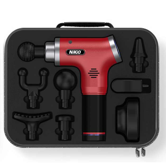 Súng massage gun cầm tay 4 đầu, 6 tốc độ Nhật Bản Nikio NK-170A - Màu đỏ đô - Đánh bay mọi cơn đau nhức mỏi, căng cơ hiệu quả Súng massage gun cầm tay