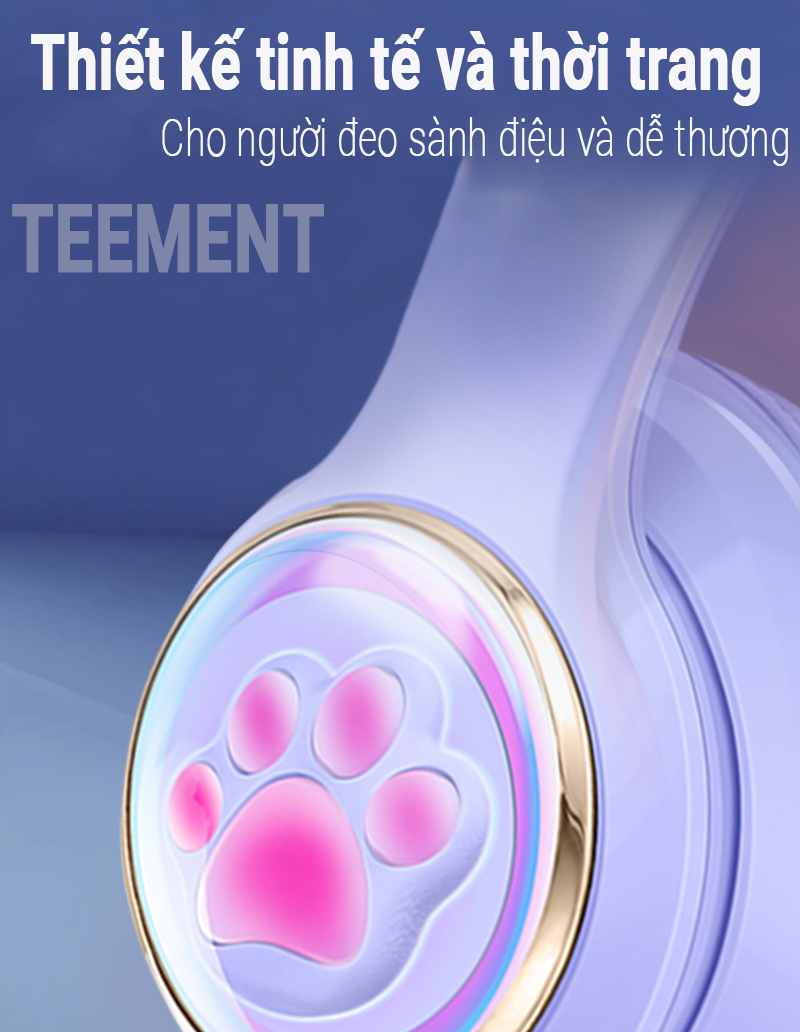 Tai Nghe Bluetooth Tai Mèo Phát Sáng Teement, Tai Nghe Không Dây, Tai Nghe Chụp Tai Bluetooth 5.3, Đèn Led Và Âm Bass Mạnh Mẽ -hàng Chính Hãng Mô tả sản phẩm Tai nghe
