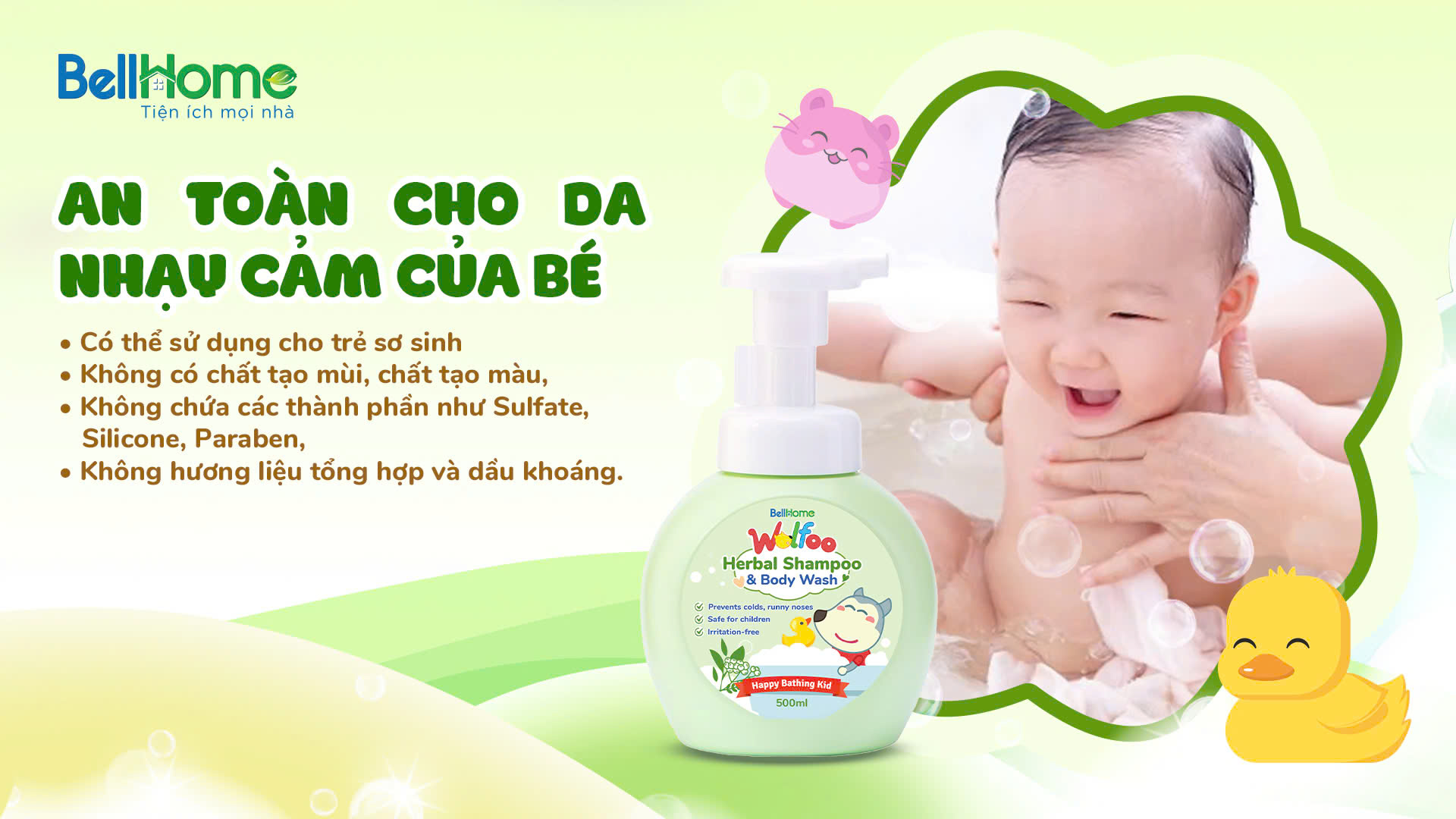 Tắm Gội Thảo Dược Wolfoo Baby Bell Home chính là lựa chọn thông minh của cha mẹ dành cho bé - vừa giúp bé sạch sẽ, dễ chịu vừa phòng và chữa bệnh cảm cúm
