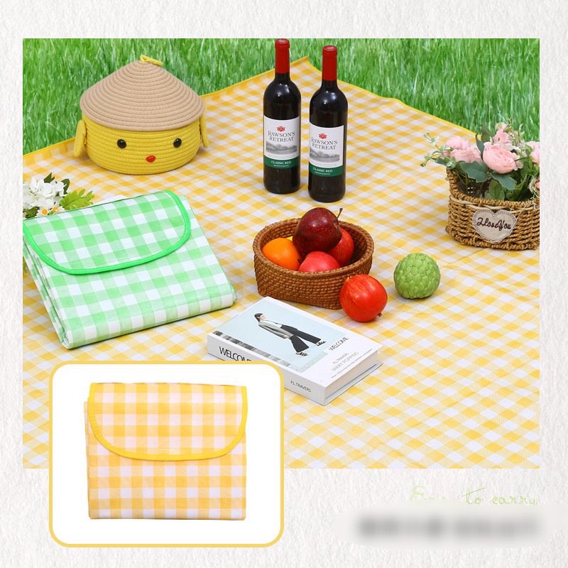 -Tấm thảm du lịch dã ngoại gấp gọn , bạt cắm trại cao cấp chống nước ,họa tiết caro màu sắc tươi mới , trang trí nhã nhặn xinh xắn có thể trải làm thảm