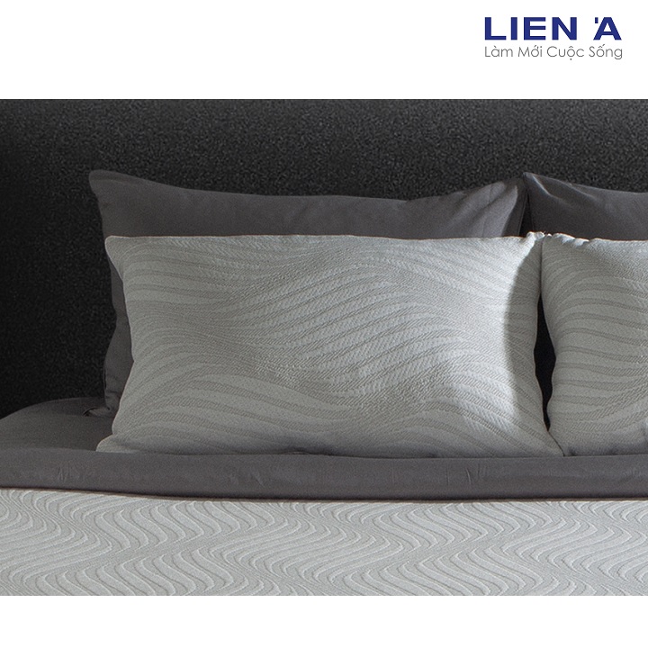 Sản phẩm gồm: 1 Ruột gối + 1 Áo lót gối + 1 Vỏ gối Liên Á màu ghi mềm mại, thoáng khí