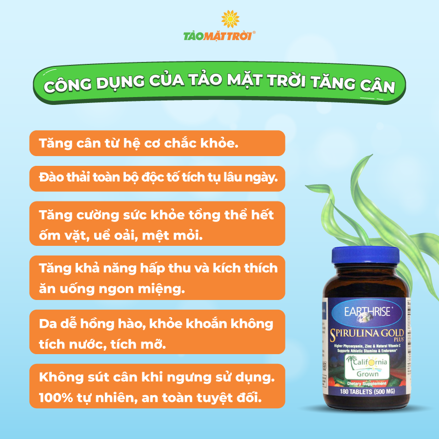 Tảo Mặt Trời Spirulina Gold Plus Tăng Cân Hiệu Quả Nhất Hiện Nay