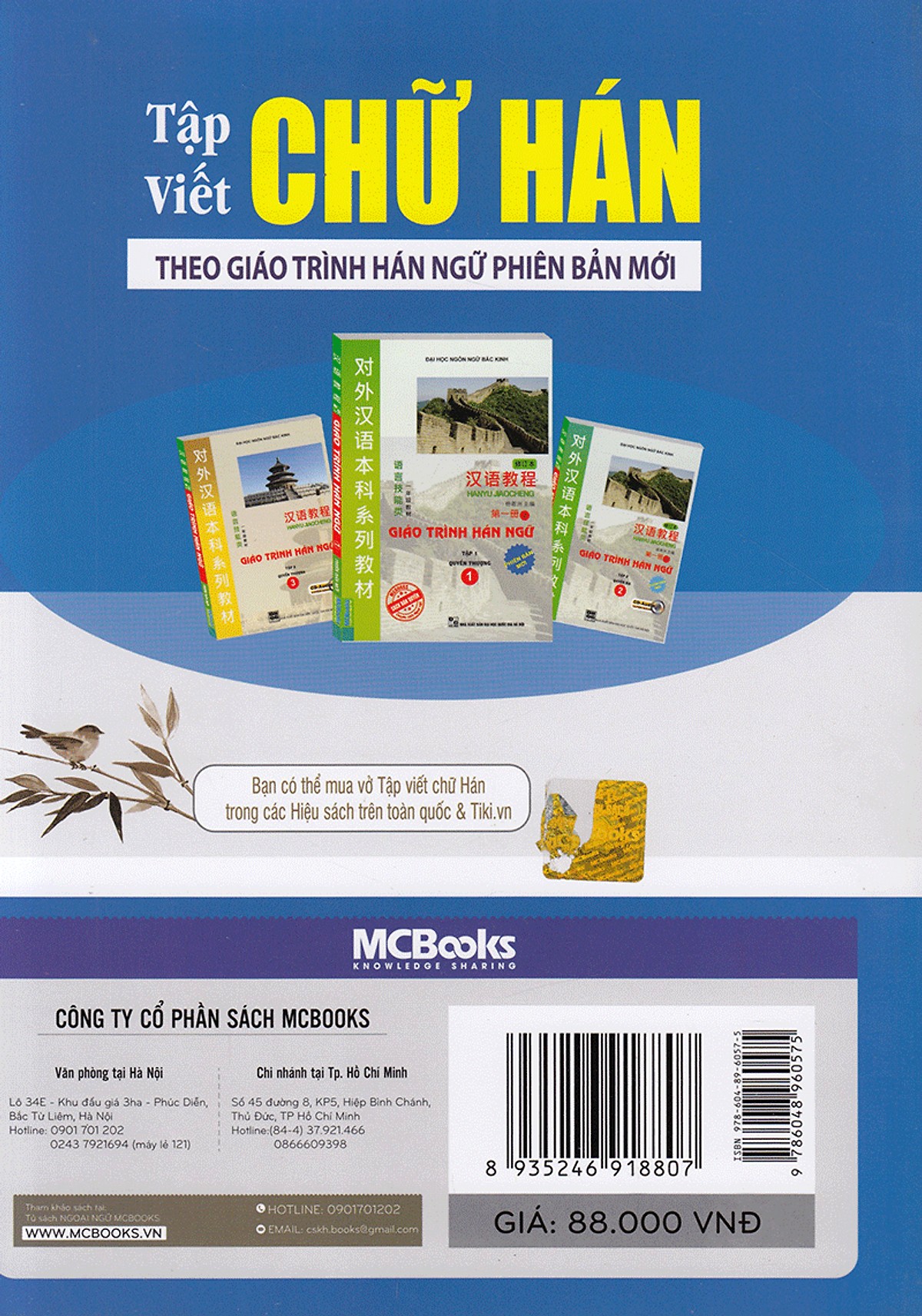 Tập Viết Chữ Hán Theo Giáo Trình Hán Ngữ Phiên Bản Mới Chúng ta đều biết, chữ Hán thuộc hệ chữ tượng hình, nó khác hoàn toàn với hệ chữ Latinh mà người Việt chúng ta đang sử dụng. Bởi vậy, hiện nay, đa số những người học tiếng Trung Quốc nói chung đều có tâm lý sợ học chữ Hán, đặc biệt là với những người mới bắt đầu. Cuốn Tập viết chữ Hán - Dựa theo giáo trình Hán ngữ phiên bản mới được biên soạn để giúp đỡ các bạn học tốt chữ Hán ngay từ trong những giai đoạn ban đầu. Cuốn sách này được biên soạn với nội dung bám sát giáo trình Hán ngữ sơ cấp phiên bản mới. Các chữ Hán được soạn ra từ hệ thống từ mới của từng bài, đi kèm phiên âm, nghĩa Hán Việt và nghĩa gốc của từng từ. Phần tập viết phiên âm và tập viết các chữ Hán theo thứ tự từng nét một sẽ giúp các bạn học và nhớ chữ Hán lâu hơn. Nội dung của sách được xây dựng theo 4 phần chính: Phần 1: Danh mục bộ thủ chữ Hán: cung cấp cho các bạn danh mục 214 bộ thủ chữ Hán, không chỉ bao gồm cách viết, tên bộ, phiên âm và ý nghĩa tiếng Việt. Phần 3: Bao gồm 40 bài tập viết chữ hán Mỗi bài sẽ giới thiệu cho bạn từ 2-6 bộ thủ mới (bao gồm âm hán Việt, cách viết chữ từng nét,). Tiếp đó là các cụm từ mới có bộ thủ đó bao gồm cả phiên âm và nghĩa tiếng việt chi tiết giúp các bạn luyện tập và ghi nhớ bộ thủ, đồng thời thu thập thêm nhiều từ vựng mới. Phần 4: 500 chữ Hán cơ bản: Tại phần này sẽ cung cấp cho bạn 500 chữ Hán cơ bản gồm cả chữ phồn thể và giản thể , xếp thứ tự theo phiên âm Pinyin. Mỗi chứ Hán được giải thích rõ về HÌNH-ÂM-NGHĨA và cách viết (tả pháp). Cuốn sách sẽ là người bạn đồng hành thân thiết, hỗ trợ đắc lực cho các bạn yêu thích và muốn học tốt tiếng Trung.
