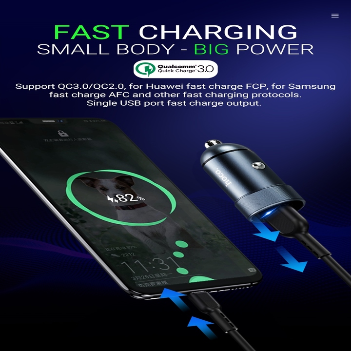 - Tẩu sạc nhanh đa năng dùng cho xe hơi Hoco hỗ trợ sạc nhanh cho QC3.0 / QC2.0, cho FCP sạc nhanh Huawei, cho AFC sạc nhanh AFC và các giải pháp sạc nhanh khác. Tương thích với nhiều dòng điện thoại khác nhau từ iPhone/iPad cho đến các dòng Android Samsung/ Huawei/ Oppo/ X -Hỗ trợ các mức điện áp ngỏ vào từ 12V - 24V. Các tiếp điểm được thiết kế chắc chắn, tương thích với tất cả các loại xe. Cho hiệu suất sử dụng ổn định.