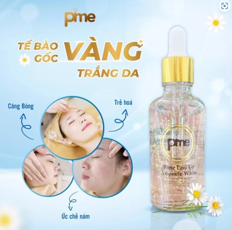 Tế bào gốc Vàng trắng da Pime Feel Up Ampoule White dưỡng trắng, mờ nám, dạng tinh chất siêu cấp ẩm