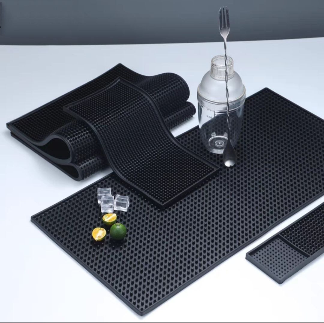 Mua tại Tiktok+ Thảm cao su quầy Bar là dụng cụ dùng để lót ly và các dụng cụ trong pha chế tại các quầy bar, quầy pha chế, chống tràn nước trên quầy, giữ các ly được sạch sẽ và thông thoáng, tiết kiệm không gian quầy bar. + Thảm Lót Cao Su được làm bằng chất liệu cao su dẻo và dày nên có độ bám vào mặt sàn cao, chống trượt hiệu quả. + Mặt trên của tấm thảm lót được thiết kế với nhiều hạt tròn nhỏ giúp chống trơn trượt khi úp ly + Thảm bar có độ bền cao, ít bám bụi, dễ dàng cho việc cọ rữa và mau khô sau khi vệ sinh.